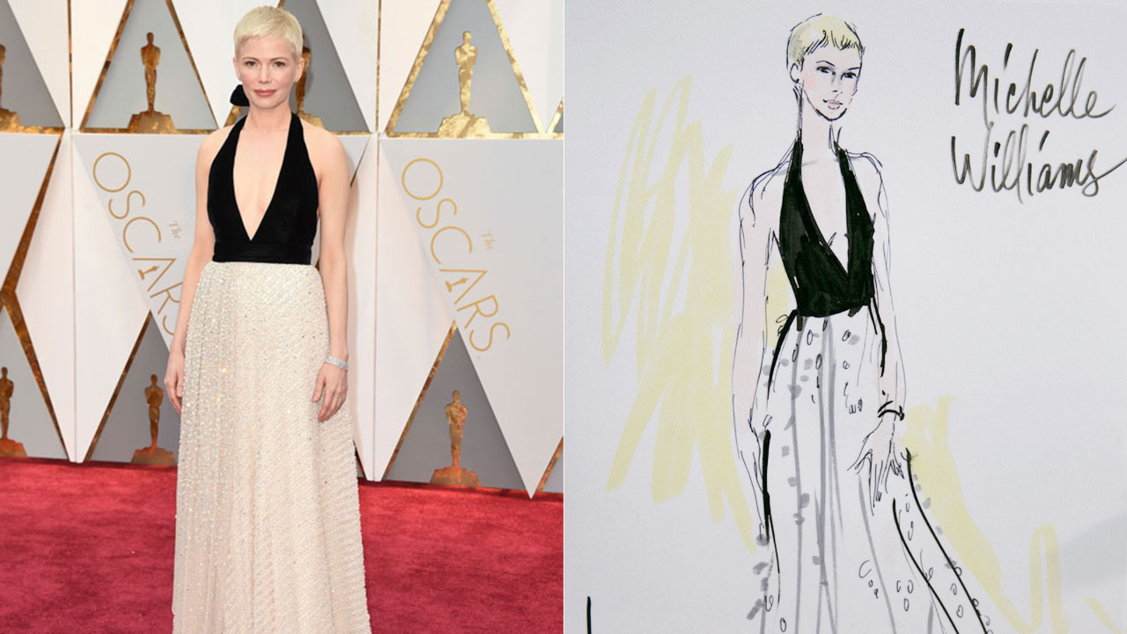 Artist Mona Shafer Edwards was high above the red carpet on Hollywood's biggest night, putting pen to paper as she live sketched the stars in their red carpet couture.