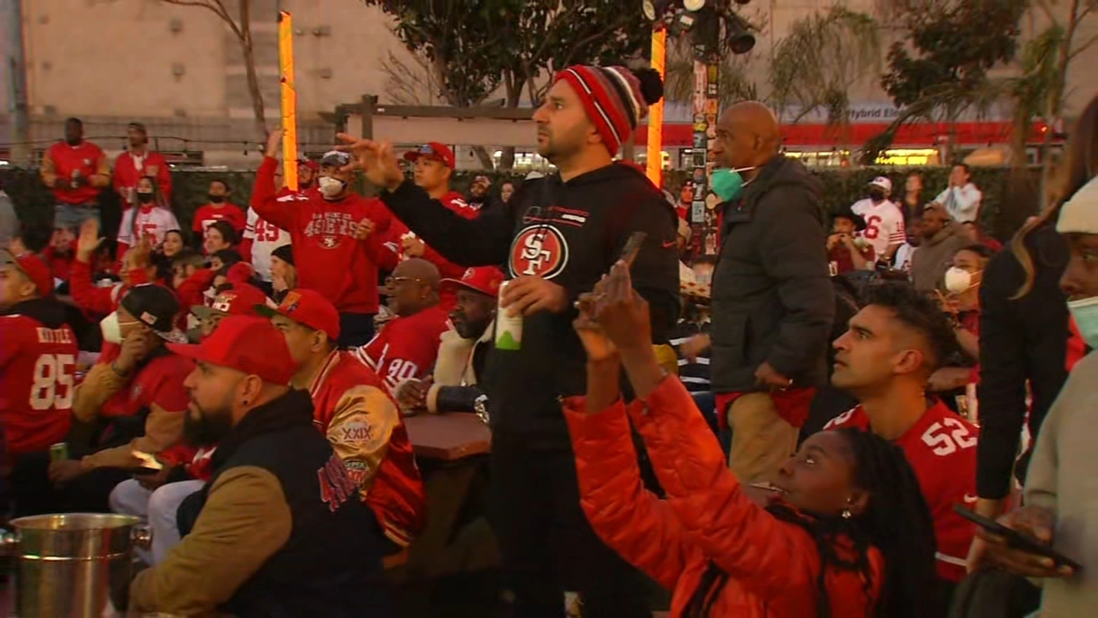 The 49ers won the game on a last second field from kicker Robbie Gould in a game where temperatures were in the single digits. However, it was nice and warm back in San Francisco - perfect temperature for a watch party at District 6 in SoMa..