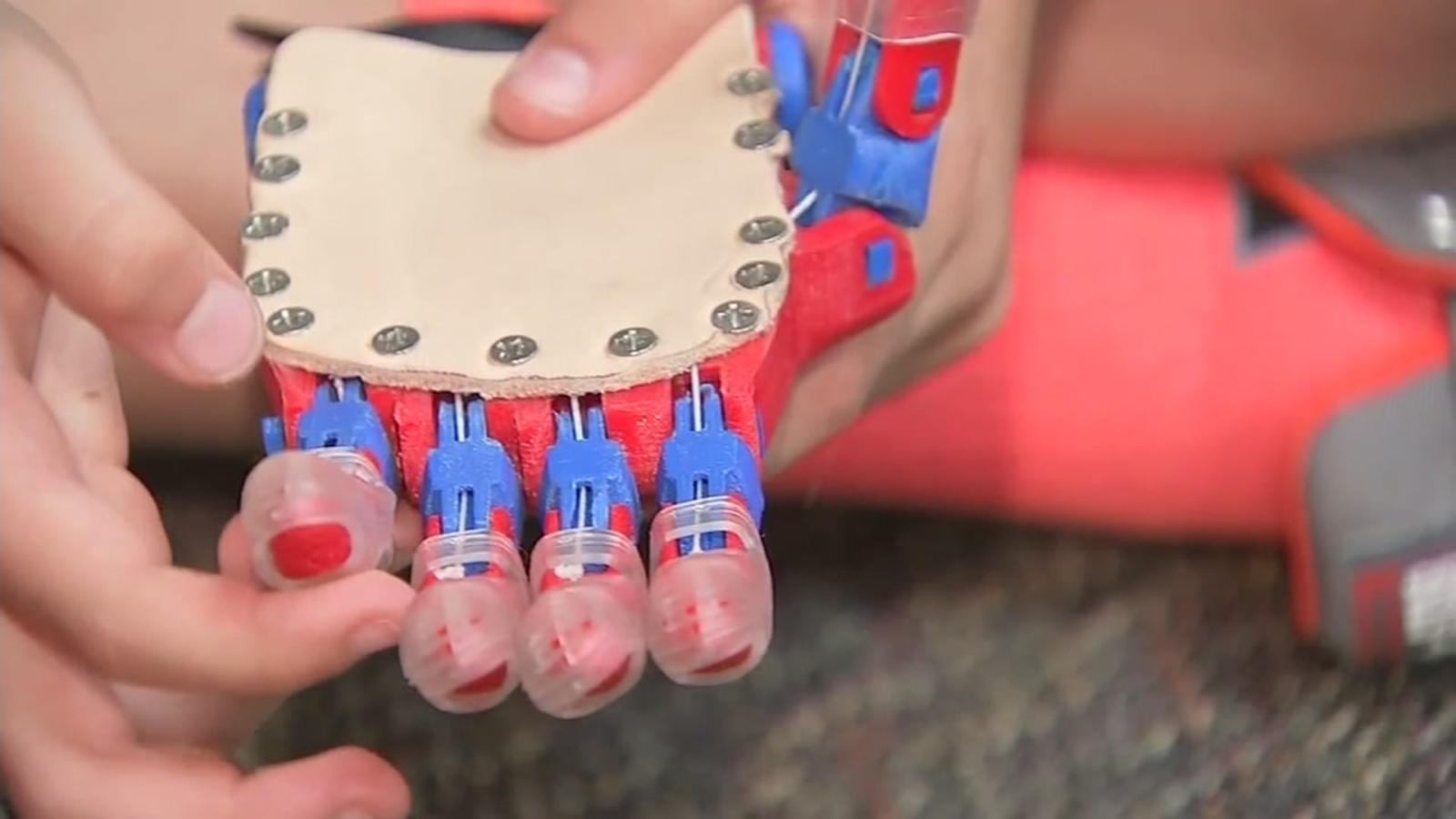 SAN FRANCISCO (KGO) -- First grader Joshua Shanks, who was born without a hand, received a prosthetic hand made by fifth graders using a 3D printer.