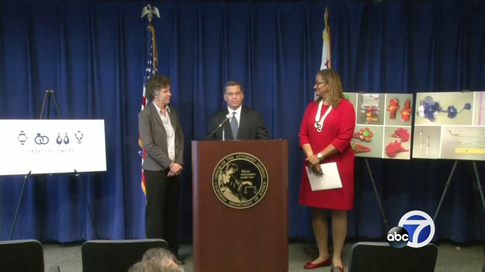 California Attorney General Xavier Becerra announced enforcement actions related to lead-tainted jewelry at a press conference this afternoon.