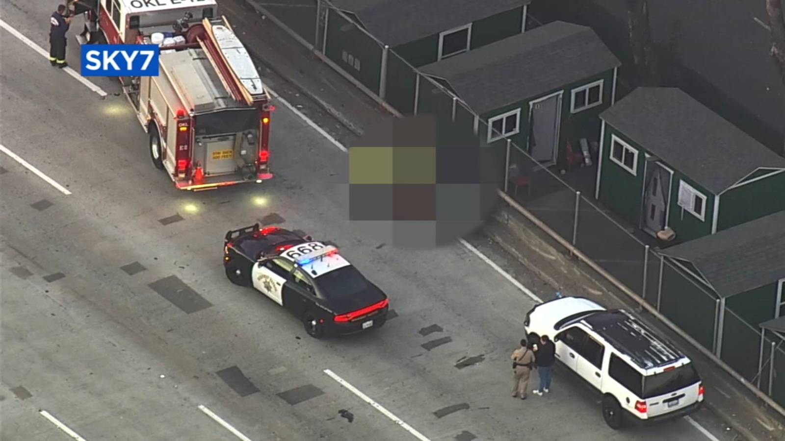 All northbound lanes at Broadway are closed. Traffic is being diverted off the freeway at Oak Street then back onto I-880 at Jackson Street, according to California Highway Patrol.