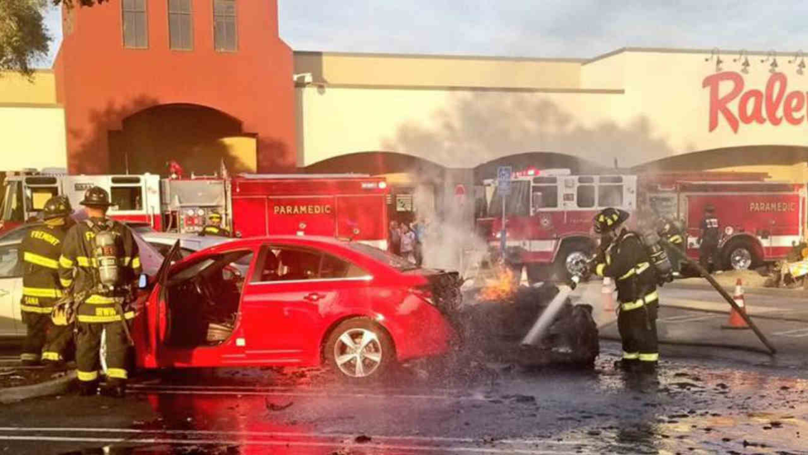 Fremont fire Battalion Chief Gary Ashley said the driver of the Porsche smelled gas as he was driving.