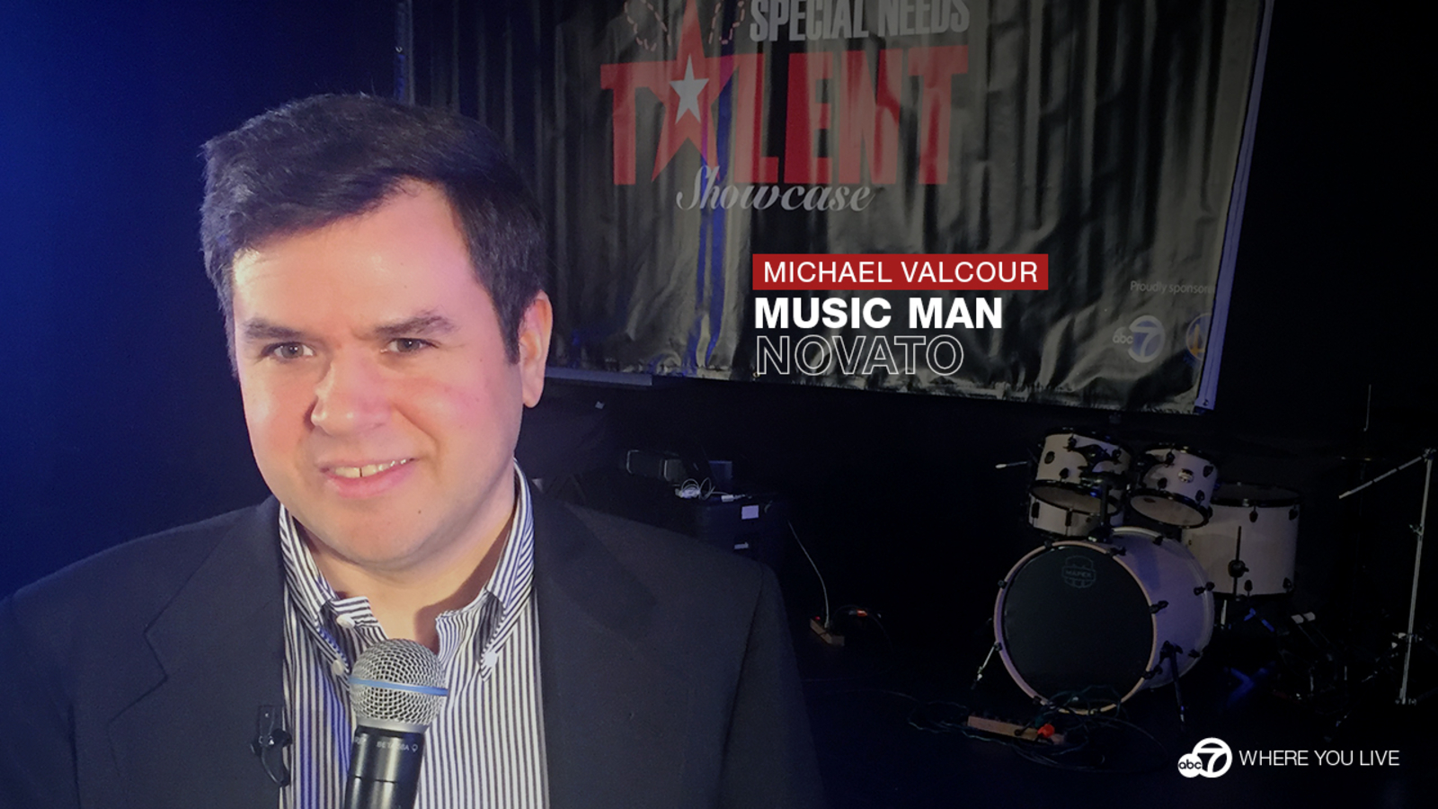 We caught up with Michael backstage at the Special Needs Talent Showcase in Santa Clara. Standing in the wings with the microphone at his side, he's focused as he prepares for the finale. He's the last performer of the night.