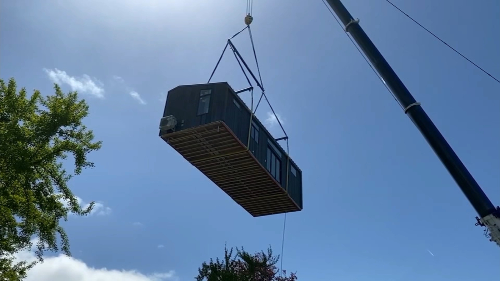 PALO ALTO, Calif. (KGO) -- If neighbors in Palo Alto looked at the skies Tuesday afternoon, they were in for quite a surprise. A family had a brand-new living unit delivered by a 500-ton crane right into their backyard.