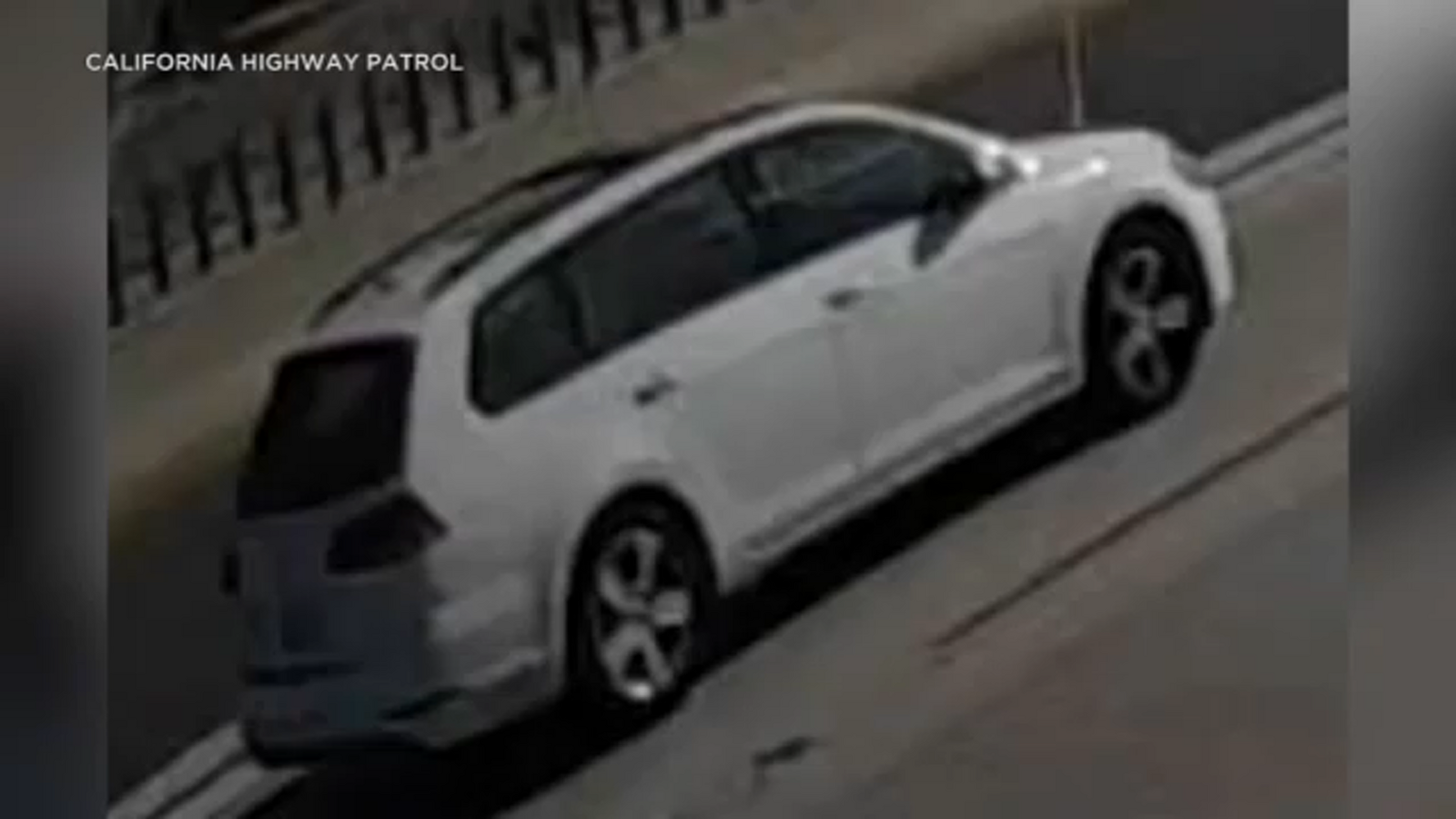 The California Highway Patrol described the vehicle as a white Volkswagen Golf SportWagen with non-tinted windows, either a 2018 or 2019 model.