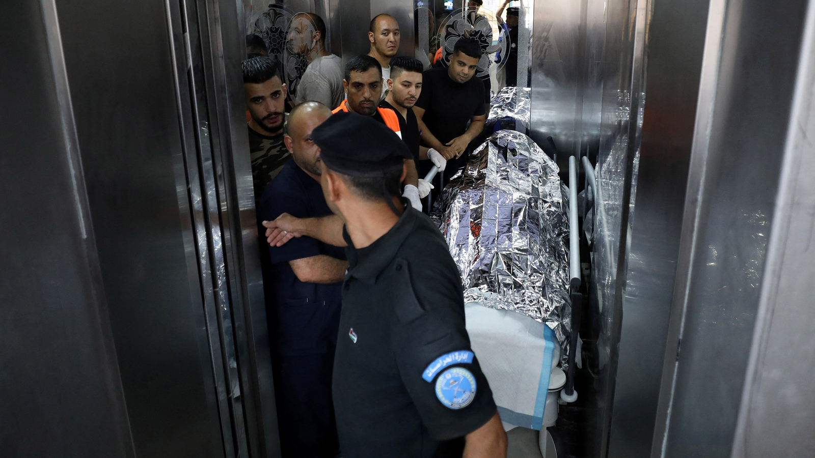 Medics transport the body of a US citizen after she succumbed to her wound from a reported gunshot, at a hospital in Nablus in the occupied West Bank on September 6, 2024.