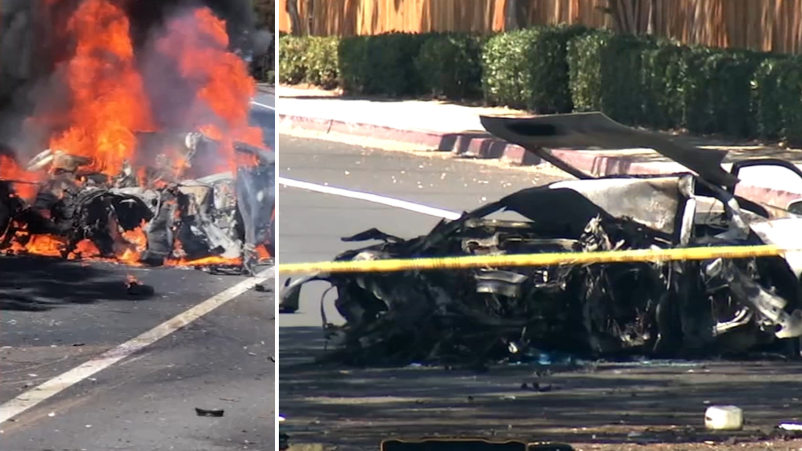 A burned out hull is all that was left of a Nissan 300ZX, involved in a fiery crash that killed the driver around 10:30 a.m. Thursday along James Donlon Boulevard near Contra Loma in Antioch. Witnesses say two people in a White Acura Integra walked away unharmed.