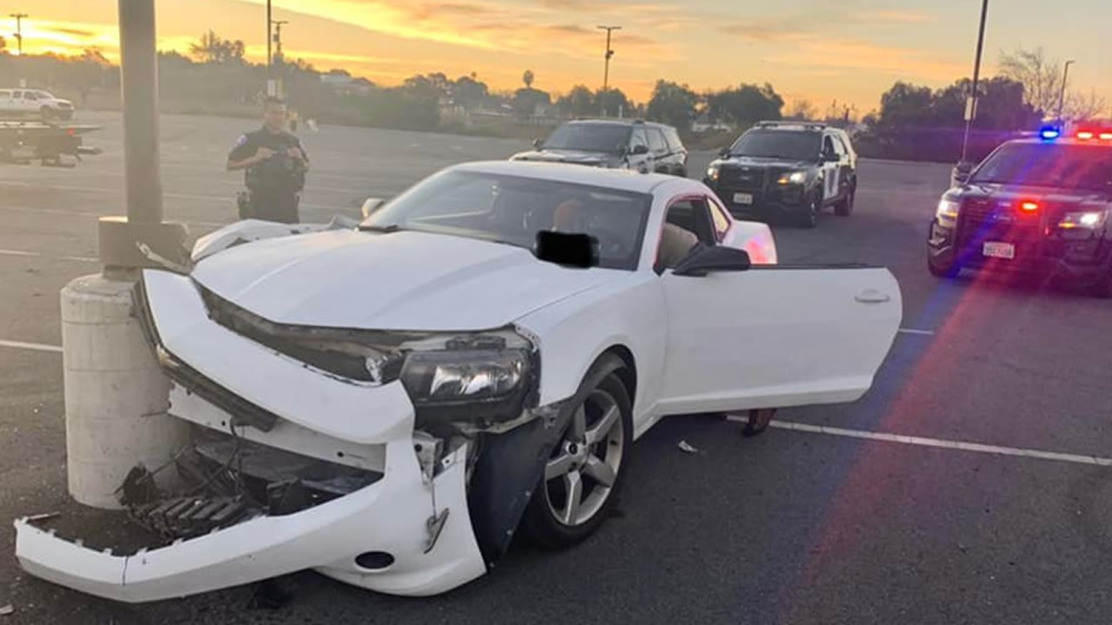 Driver arrested after video shows him doing donuts, crashing into light pole in Antioch parking lot