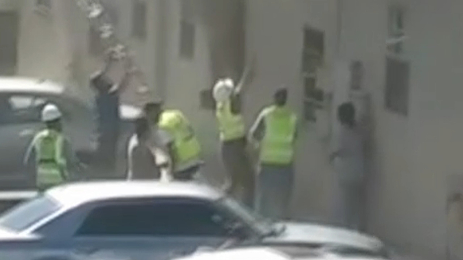The rescue was captured on video, where the father is seen dropping the baby into the arms of one of the construction workers.