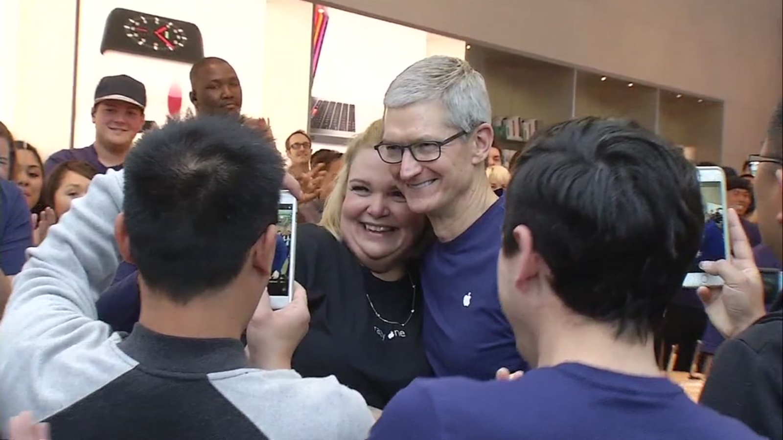 PALO ALTO, Calif. (KGO) -- Apple CEO Tim Cook welcomed customers who were purchasing the iPhone X at the Apple store in Palo Alto on University Avenue Friday morning.