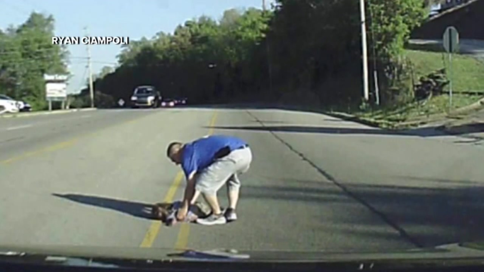She flew out of the door, landing on the pavement just as Ryan Ciampoli pulled up, catching the entire ordeal on his dashboard camera.