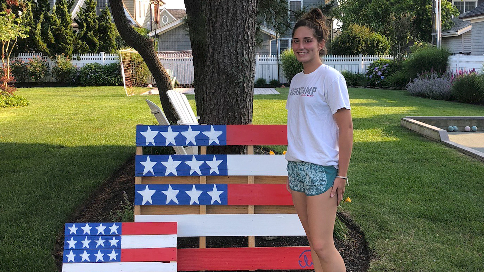 Supportive neighbors all across Isabella's neighborhood have purchased the vibrant and patriotic pallets, which are proudly displayed throughout their front yards.