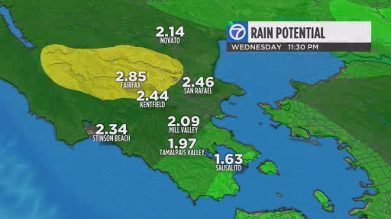 "The rain will likely start to taper off around 11p.m. Tuesday in Marin County," said Nicco. "Scattered showers are expected on Wednesday. There's a slight chance of morning rain on Thursday afternoon before we finally dry out on Friday."