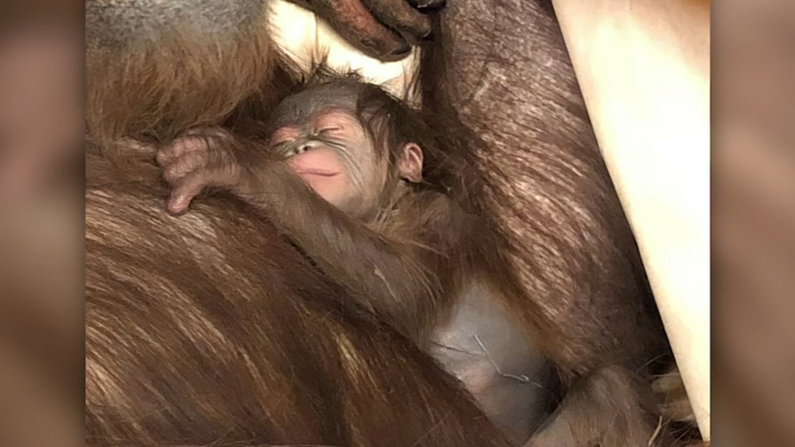 This cuddly male orangutan was born on April 28 - the first successful orangutan birth at the zoo since 2014.