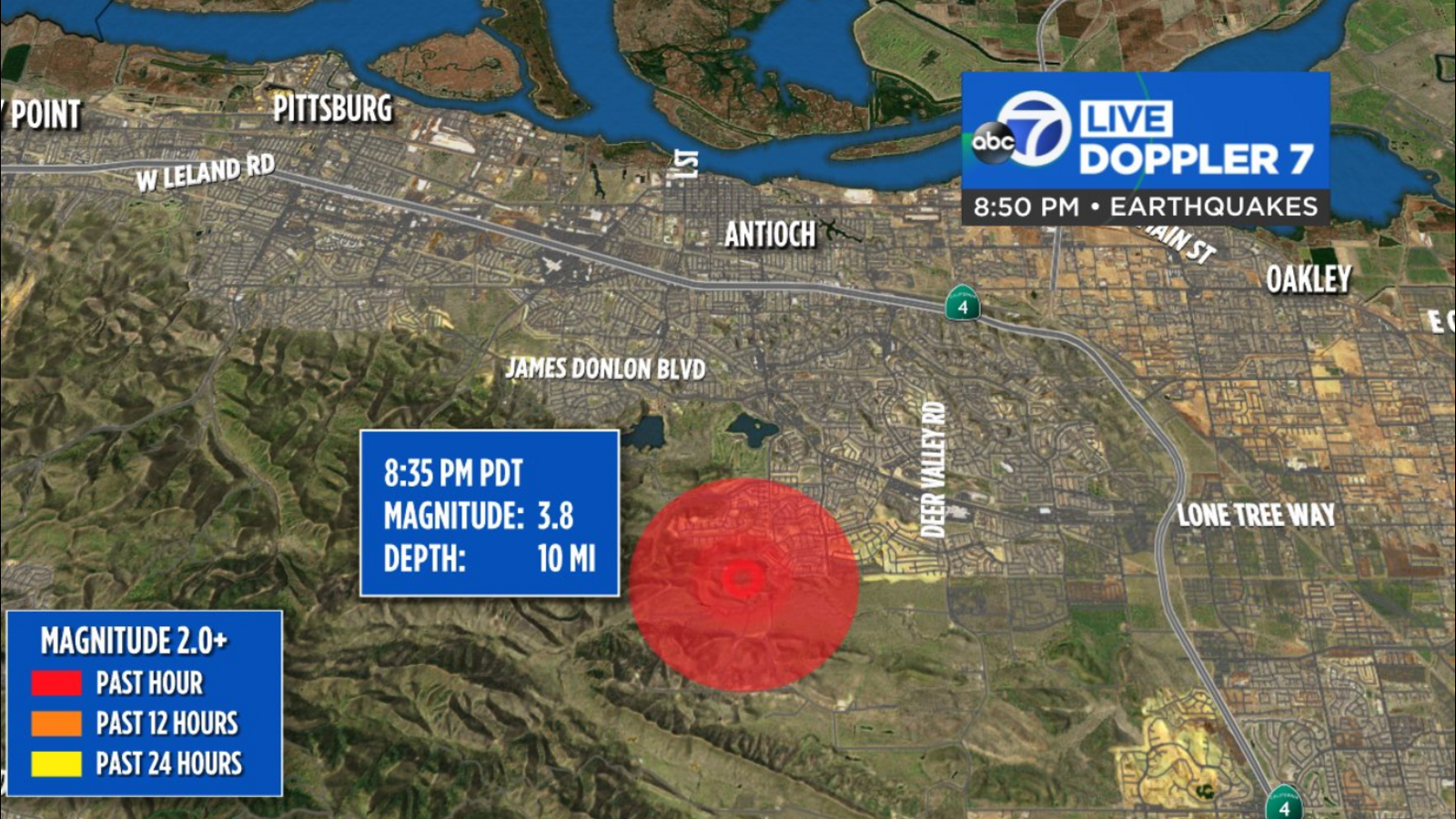 ANTIOCH, Calif. (KGO) -- A preliminary magnitude 3.8 earthquake struck near Clayton and Antioch Wednesday evening, according to the United States Geological Survey.