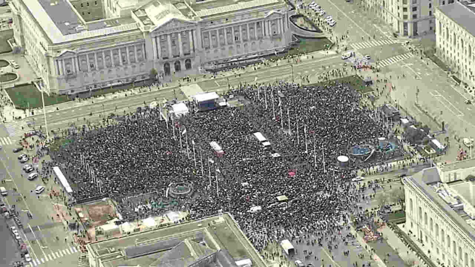 After all the speeches, the crowd with their signs marched down Market Street - an impressive sight stretching from City Hall to the Ferry Building.