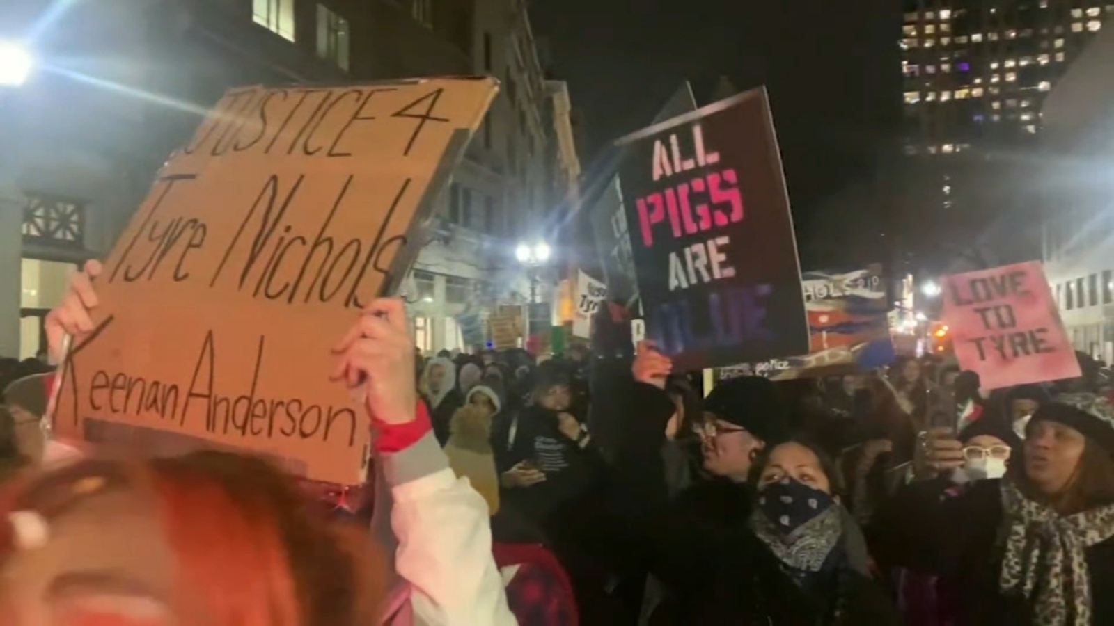 OAKLAND, Calif. (KGO) -- A few hundred people rallied and marched through downtown Oakland on Sunday, to demand justice for Tyre Nichols. The 29-year-old was brutally beaten by five Memphis police officers after a traffic stop on Jan. 7. He died three days later from his injuries.