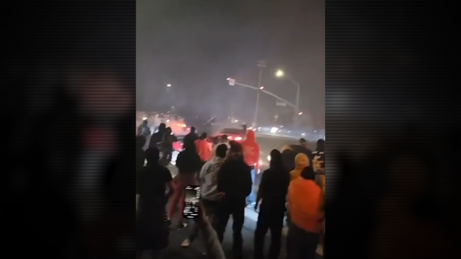 Cell phone video obtained by ABC7 News shows a sideshow in Fremont early Saturday morning. One of at least three massive sideshows that took place this past weekend in the Bay Area.