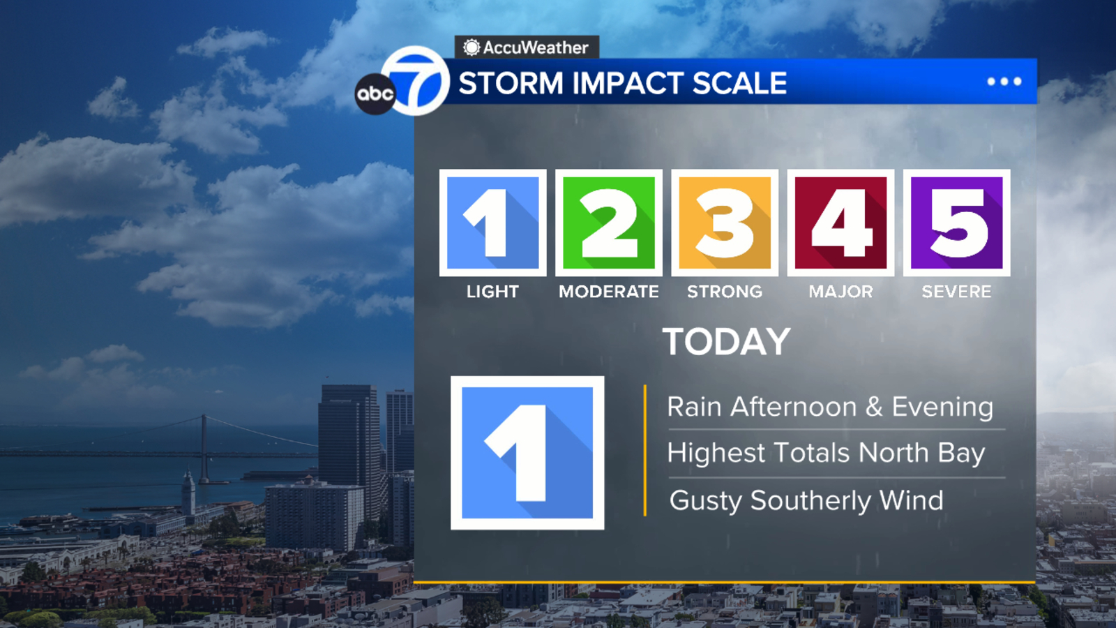 SAN FRANCISCO (KGO) -- A Level 1 storm is hitting the San Francisco Bay Area Sunday.