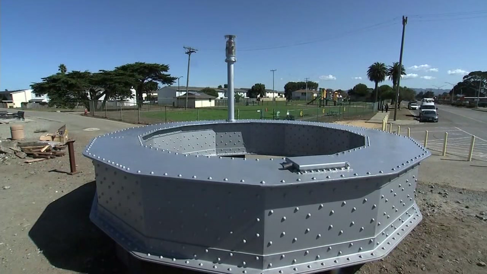 SAN FRANCISCO (KGO) -- It sits on the edge of Treasure Island. A 22-ton steel ring in fourteen riveted sections with a light sitting on top.