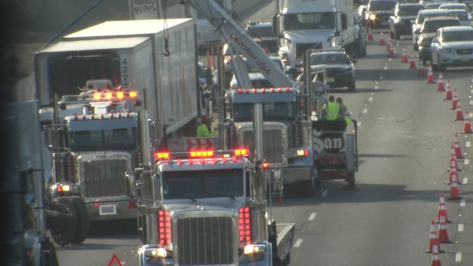 The Sig-alert issued at 5:49 a.m. is still in effect, the CHP said.