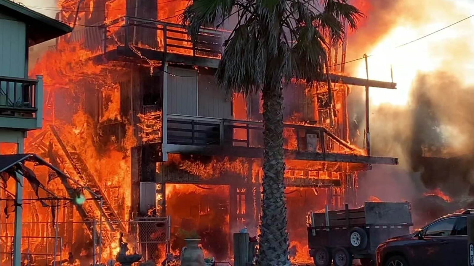 Firefighters say the middle house was empty when it started, but neighbors had to evacuate as the blaze spread. 911 callers reported 20-foot flames and explosions coming from the houses.