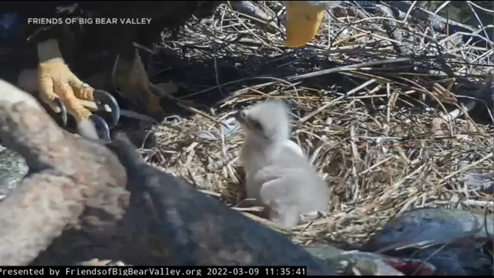 The eaglet hatched last week. It took in its surroundings for the first time last Thursday, and it was all captured on video thanks to a livestream provided by the Friends of Big Bear Valley nest camera.