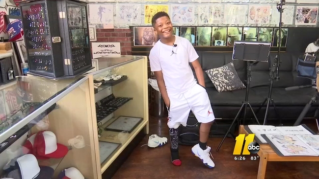 RALEIGH, N.C. -- A North Carolina 10-year-old is not letting his leg amputation hold him back. In fact, he's using it as an opportunity to inspire others. And now he has a little extra help from Wakanda, thanks to a local tattoo artist.