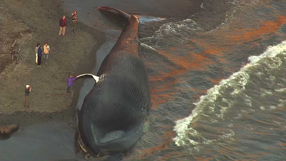 "She's the largest whale I've ever seen," Barbie Halaska from the Marine Mammal Center said. Halaska helped perform a necropsy on the whale, and says it's likely she was struck by a passing ship. "She has blunt force trauma to her left side, I'd definitely say it was a boat," said Halaska.