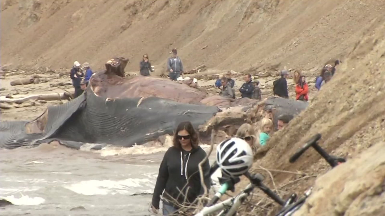 VIDEO: Massive endangered blue whale washes ashore in Bolinas