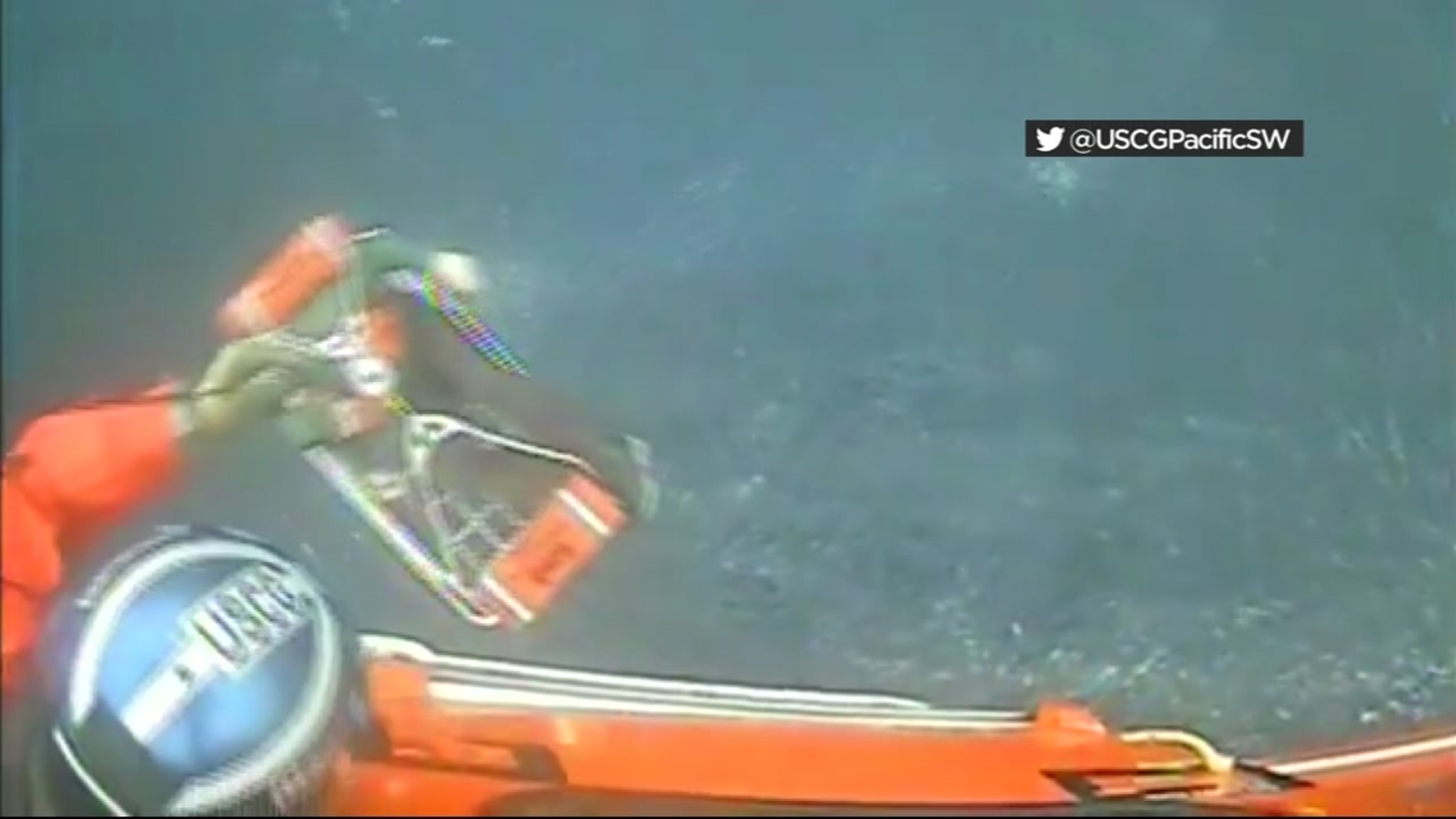 When a helicopter crew arrived, they located two men and a woman in the water and hoisted them aboard the aircraft.