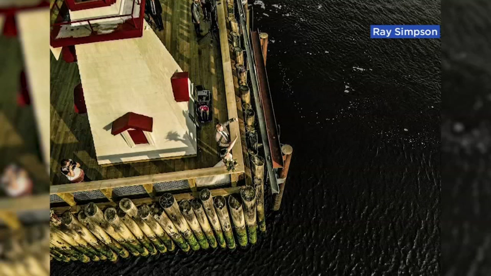 They got married on a pier in the province of New Brunswick, right across the river from Maine.
