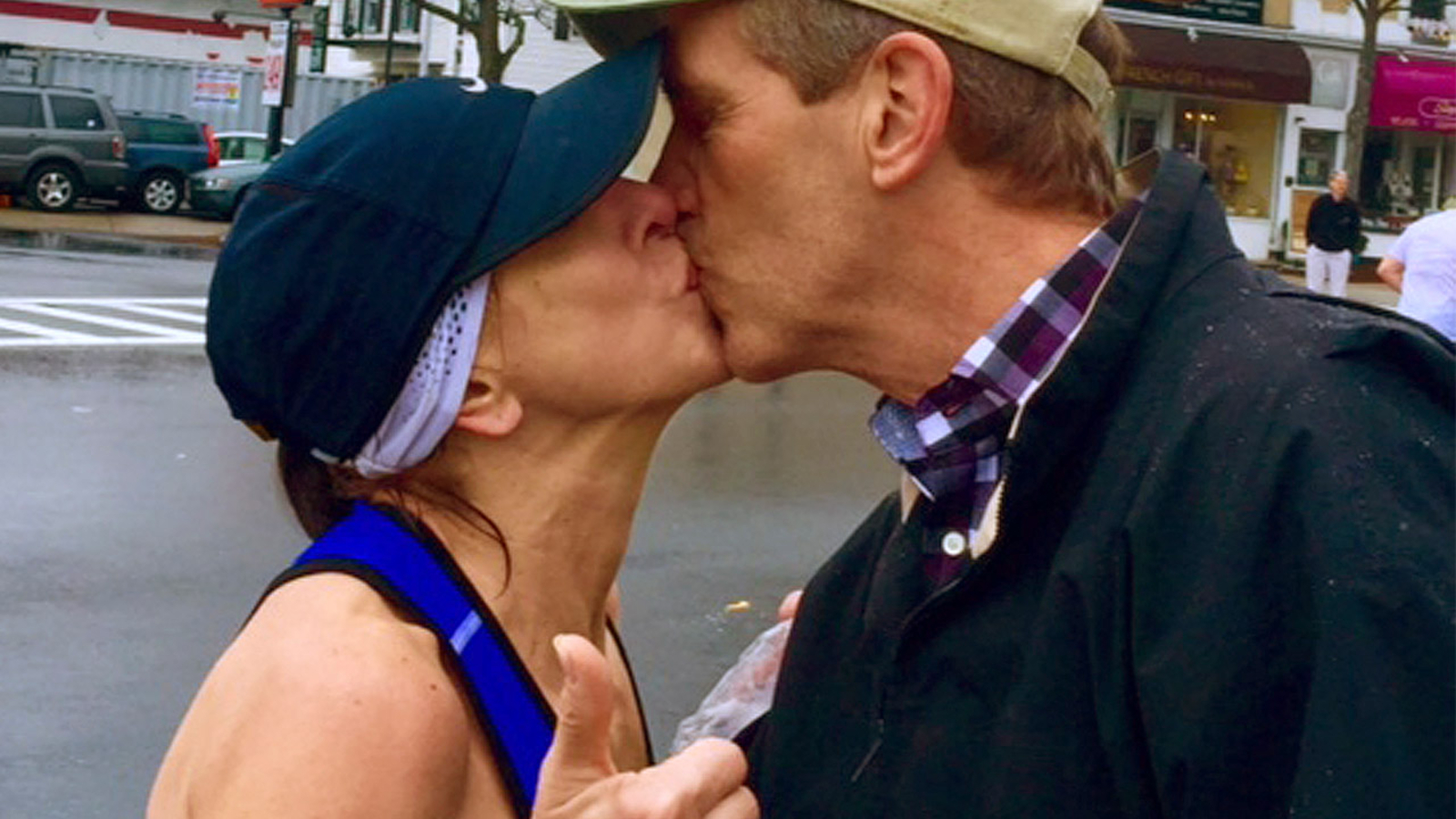 Tatge was running in her first ever Boston Marathon when she was dared by her daughter Paige to kiss a random man as she passed through the town of Wellesley, Mass.