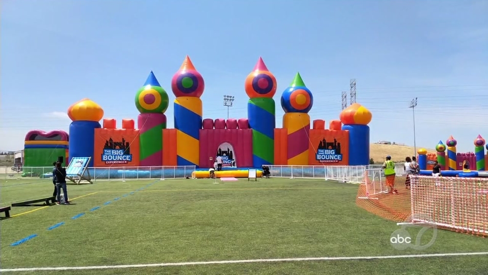 The bounce houses have a yellow hoop attached to a green pillar inside the main bounce house. The hoops were tested and failed to meet the ASTM voluntary standard intended to reduce the risk of accidental head or neck entrapment in inflatable play devices, CPSC said.