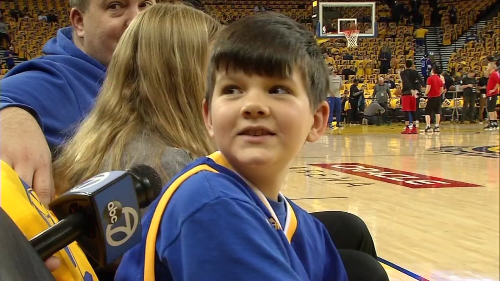 ELK GROVE, Calif. (KGO) -- A 10-year-old Warriors fan from Elk Grove who is recovering from rare knee surgery enjoyed Game 1 of the NBA Playoffs after the Dubs gave him and his family free tickets.