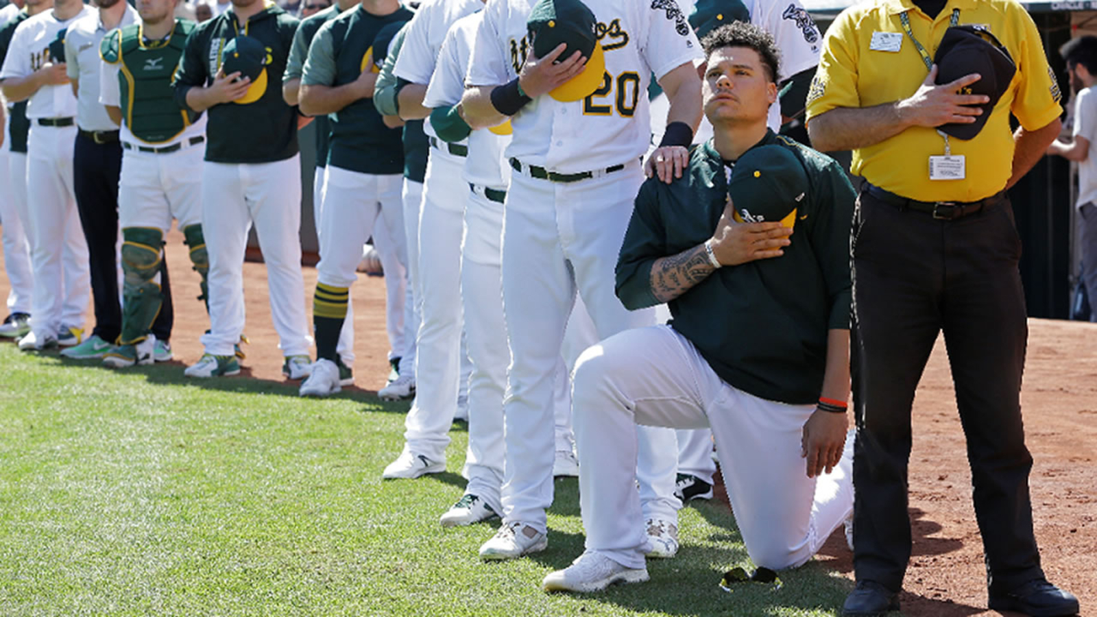 The former A's catcher took a knee to protest racism and police brutality in 2017, a decision that still impacts him today.