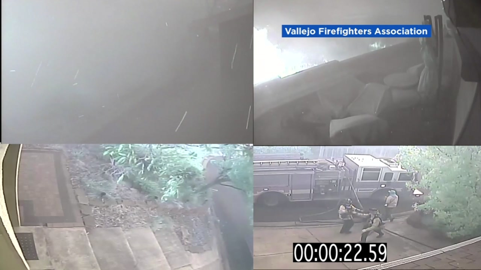 The Vallejo Firefighters Association released the video on Wednesday. The video is from a home's security camera in the Glen Cove neighborhood of Vallejo. The home is east and up a hill from the Maritime Academy. The video shows how dangerously close flames got to the residence.