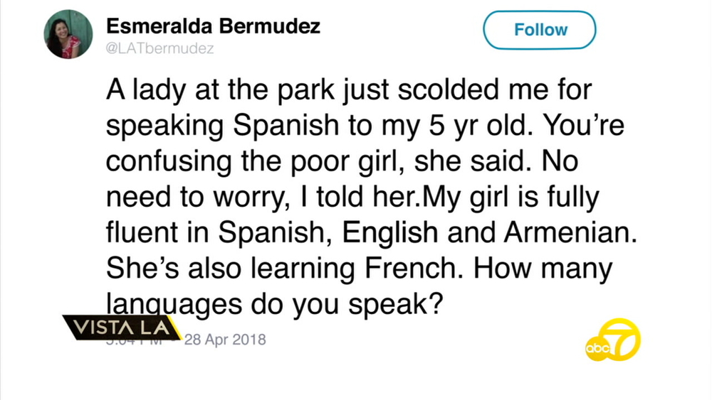 RELATED: Reporter mom told to 'speak English' becomes subject of her own story after tweet goes viral