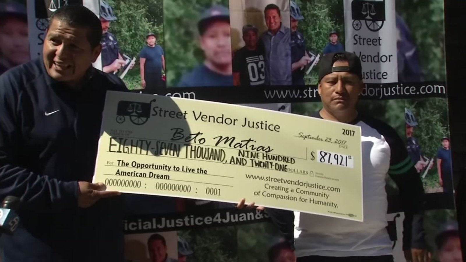 Beto Matias was presented with a check of over $87,000, courtesy of a GoFundMe campaign.