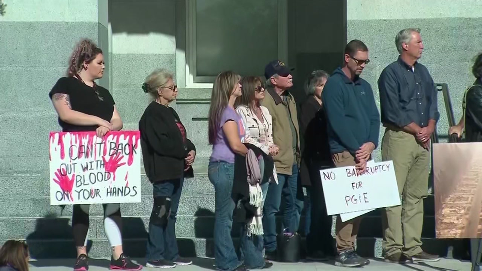 But wildfire victims, their attorneys, and activist Erin Brockovich rallied at the State Capitol, urging lawmakers to keep the utility out of bankruptcy.