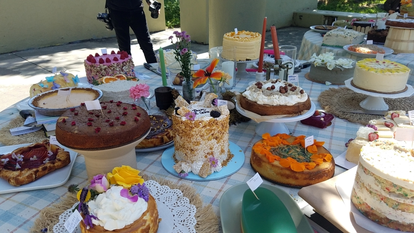 On Saturday, about 180 participants checked in with cakes, either home-baked or purchased. Many waited patiently in line before adding their contributions to the abundant, mouth-watering display, then sat on blankets to wait again until the tasting began.