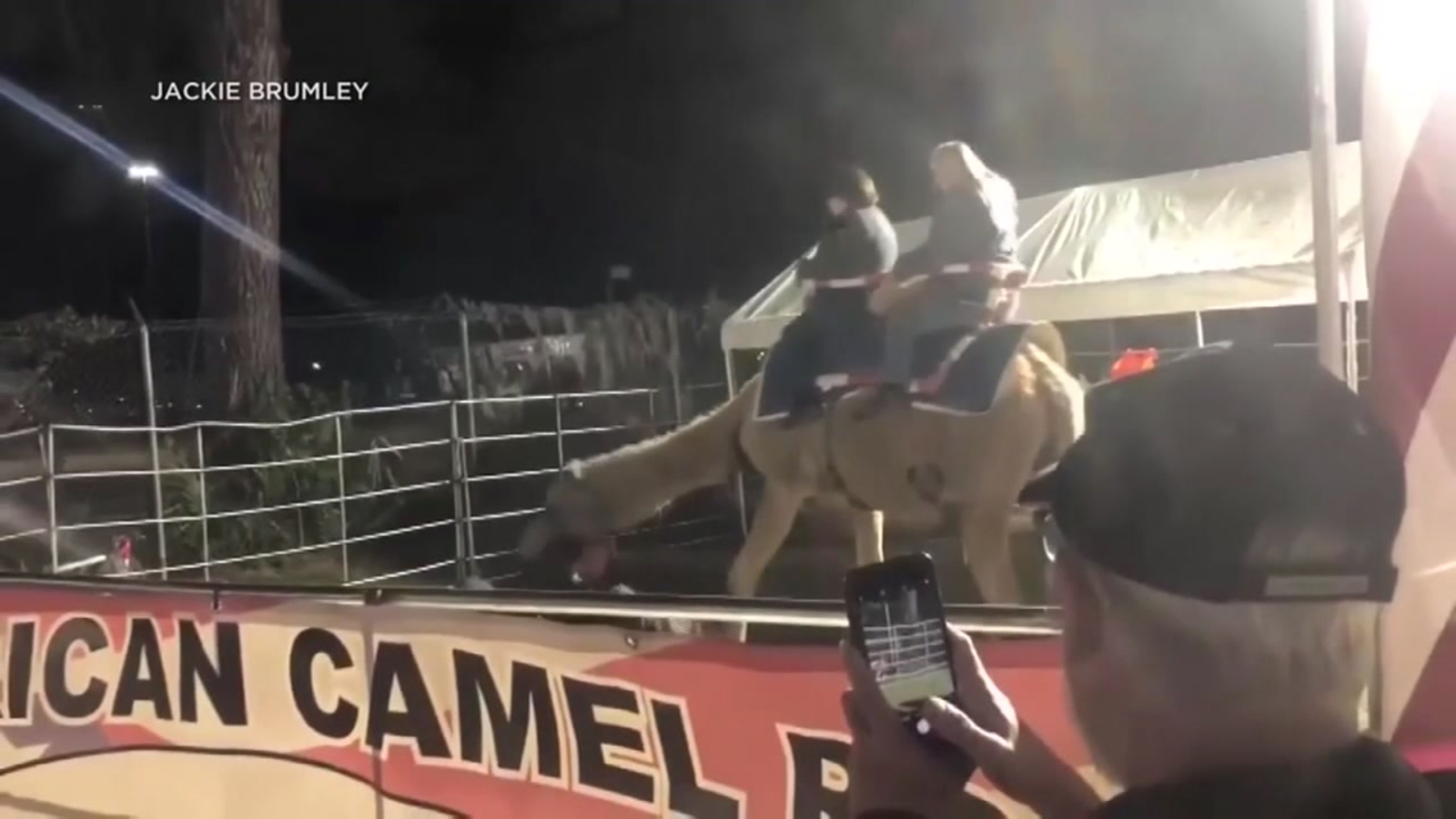 LADSON, S.C. -- A ride at the Coastal Carolina Fair, in Ladson, South Carolina, has been shut down after officials said a 10-year-old camel lunged at its handler Thursday night while two people were riding it.