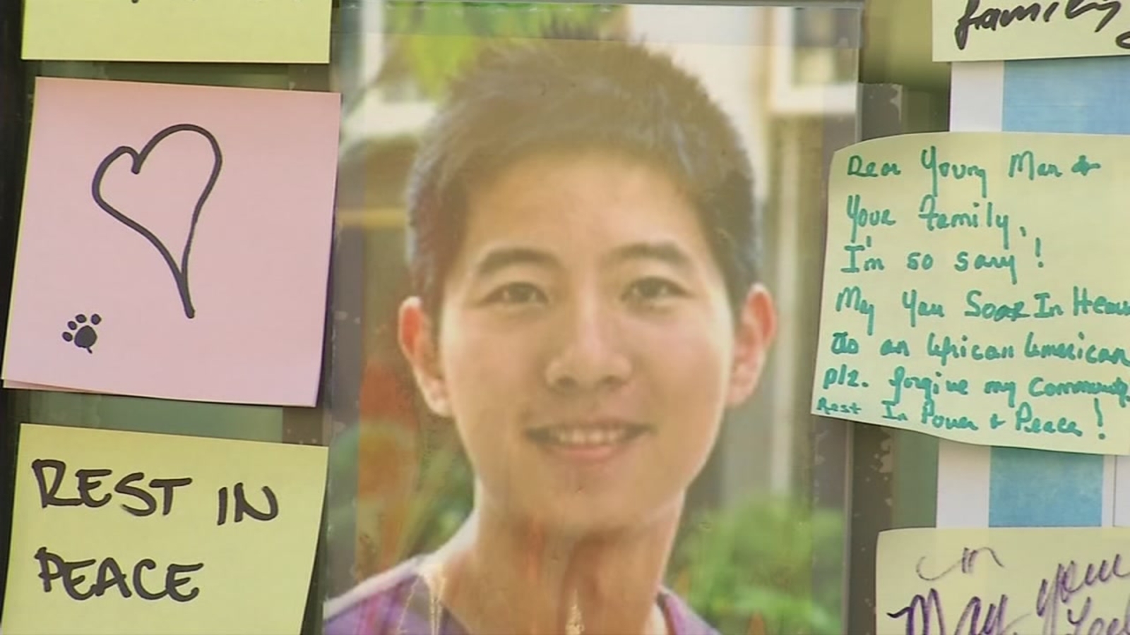 The post-it note memorial that lines two walls of the Starbucks will be made into a scrapbook and given to Shuo's parents.