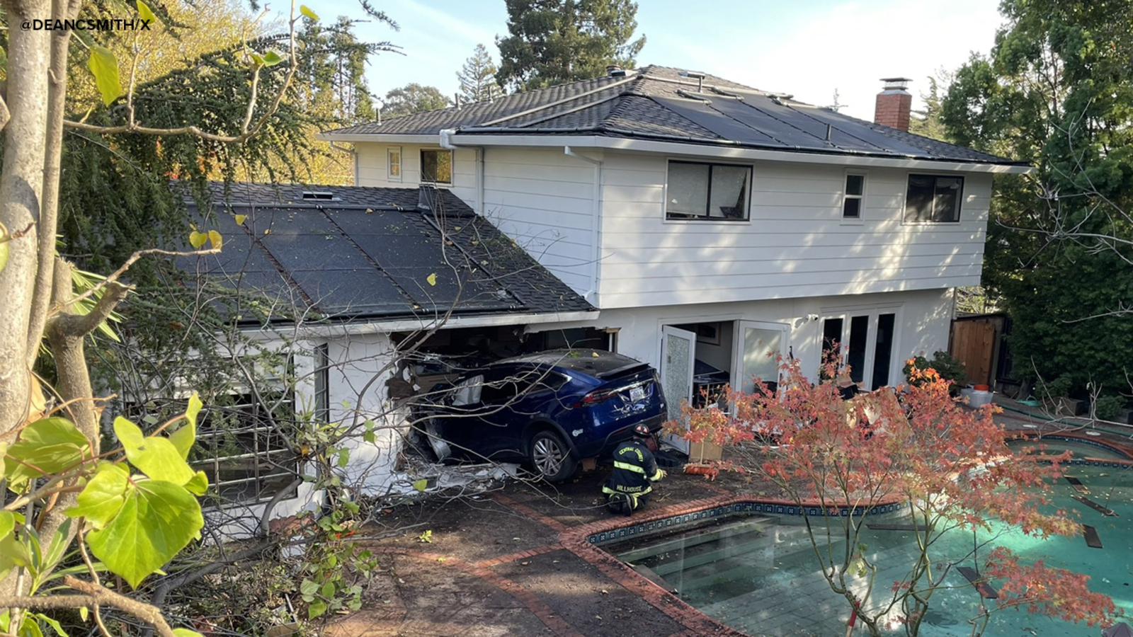 SAN MATEO, Calif. -- A Tesla crashed into a home in San Mateo on Friday morning, according to police.