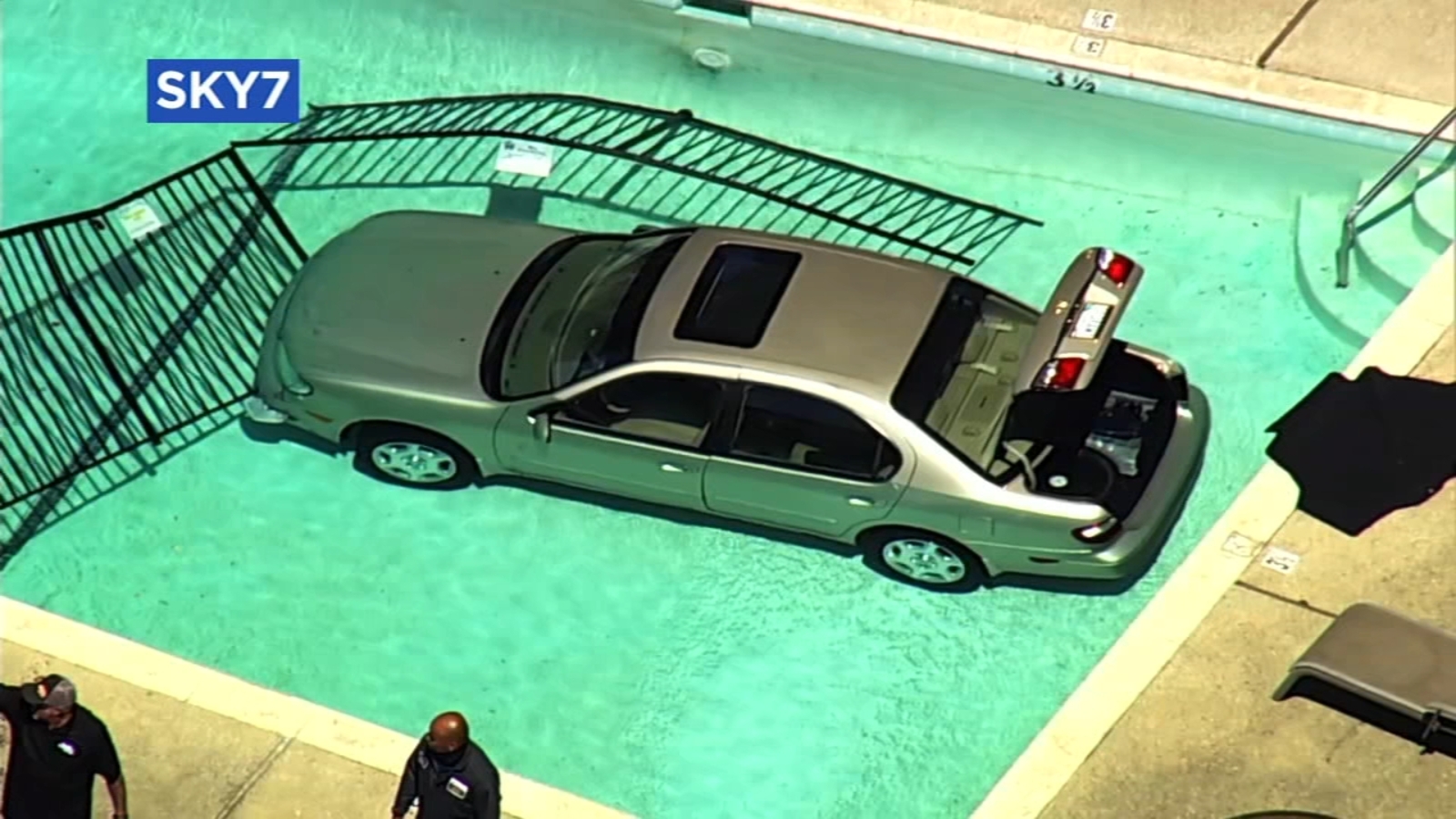 Car crashes through fence, ends up in SJ swimming pool