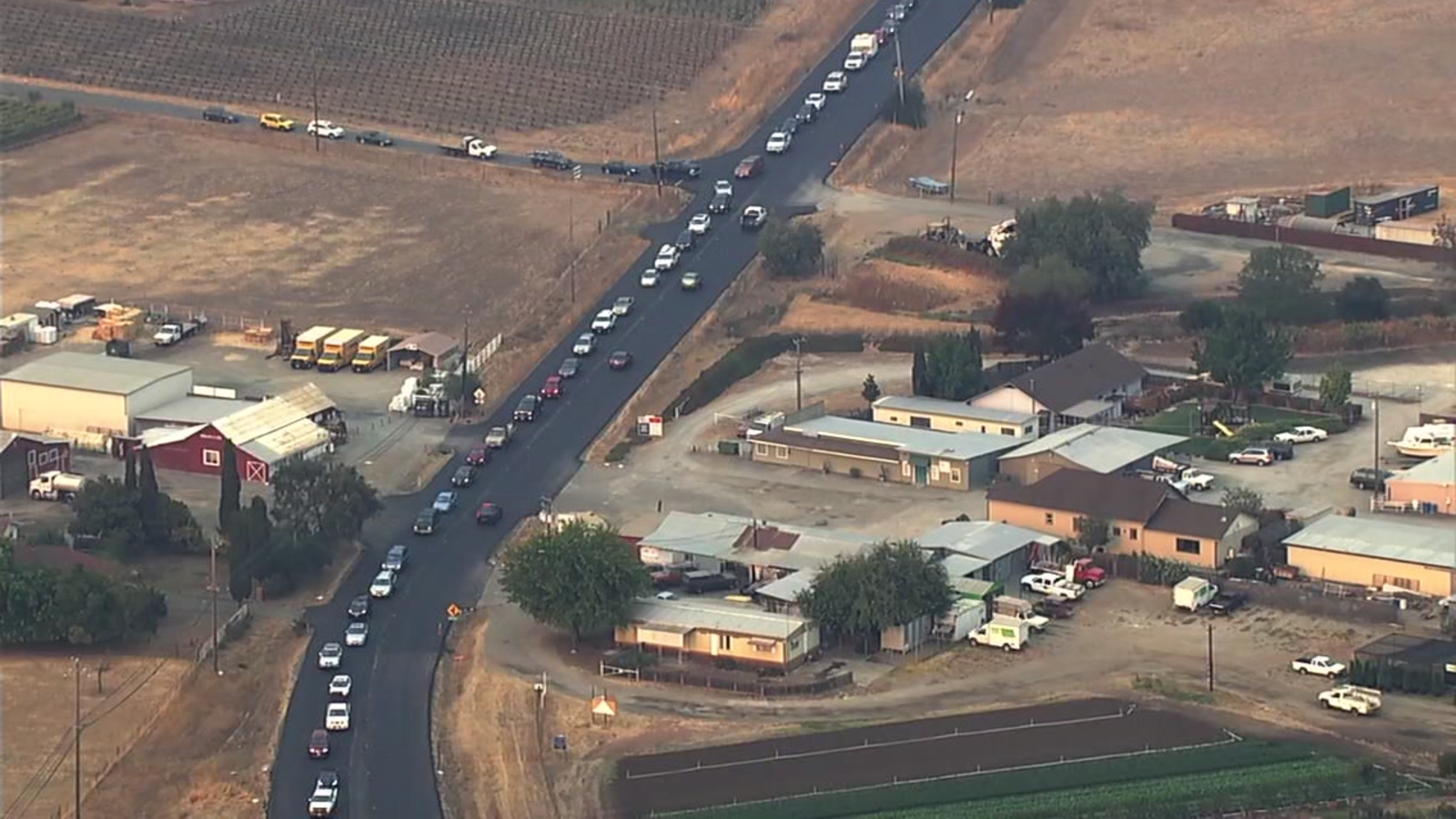 Sky7 was over the bumper-to-bumper line of cars going down toward Sonoma on Arnold Drive.