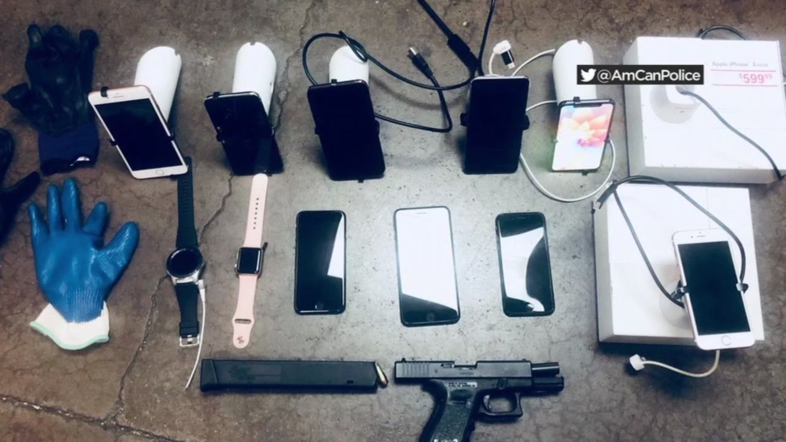 American Canyon Police tweeted a photo Sunday showing items from a T-Mobile cell phone store as well as a gun. Officers say they confiscated this evidence on Saturday from two men accused of a theft at that store that same day.