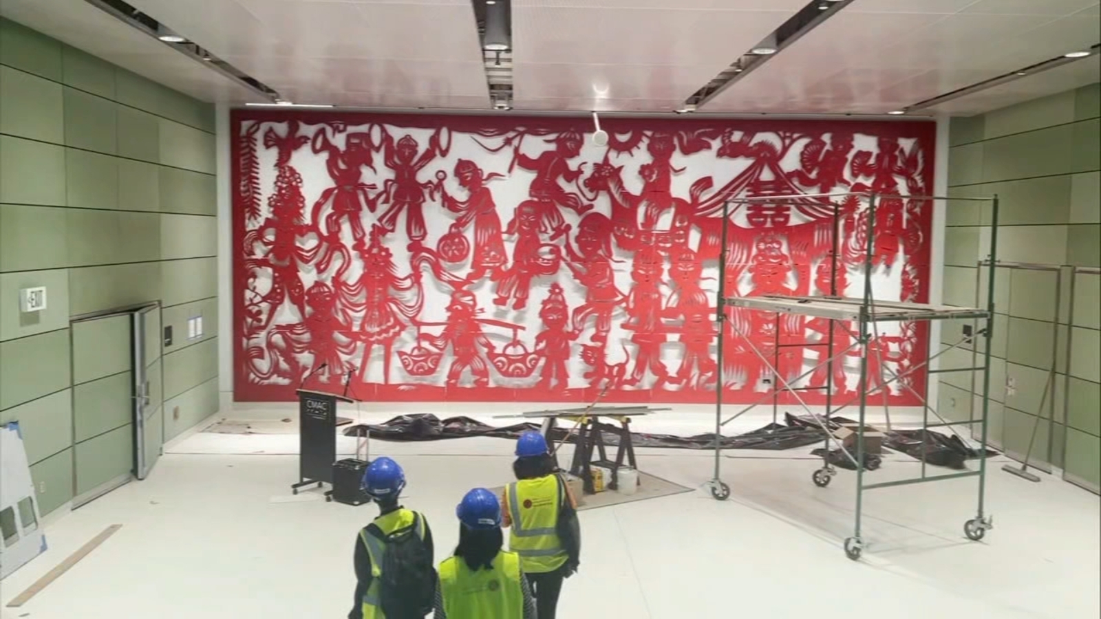Hou's folk dance display is one of three pieces on display at this station. Three artists were commissioned to create this work.