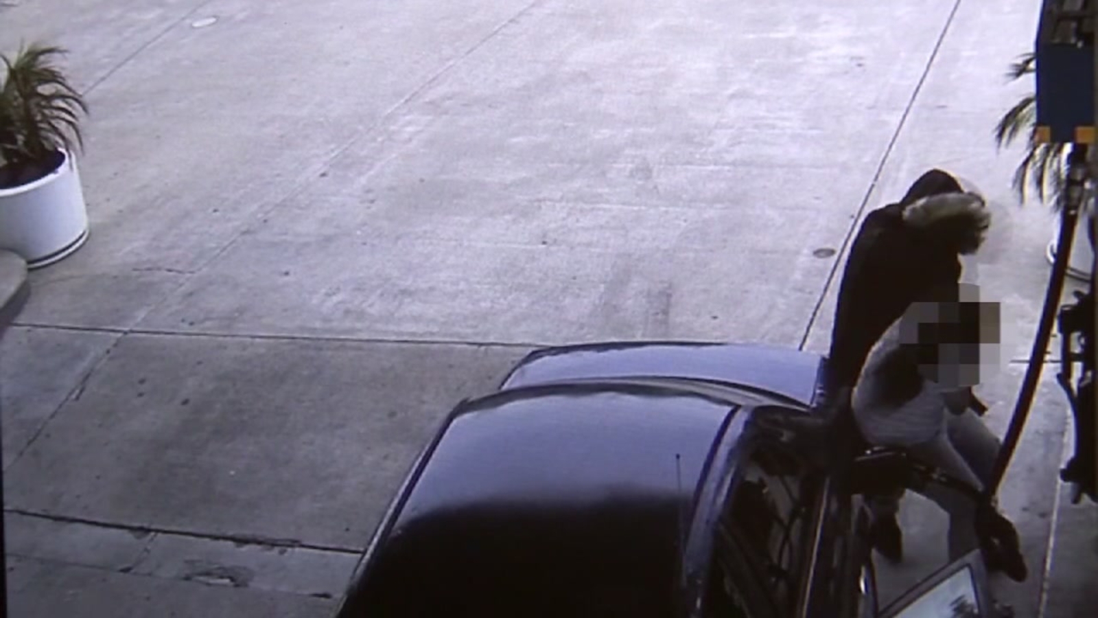 FREMONT, Calif. (KGO) -- On May 6th, this surveillance video shows a woman filling up her gas tank, on Fremont Boulevard, unaware of the man in the hooded jacket, scoping her out.