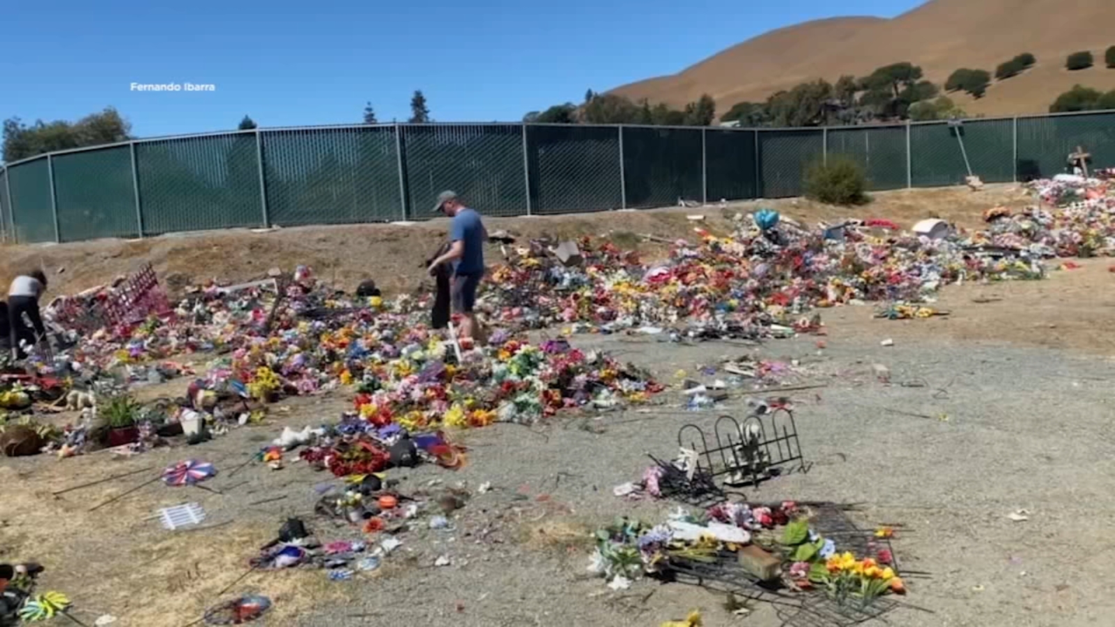 Piles of flowers and other mementos thrown on the dirt. Families sent us these videos after they learned Chapel of the Chimes Cemetery in Hayward had done a clean up of gravesites.
